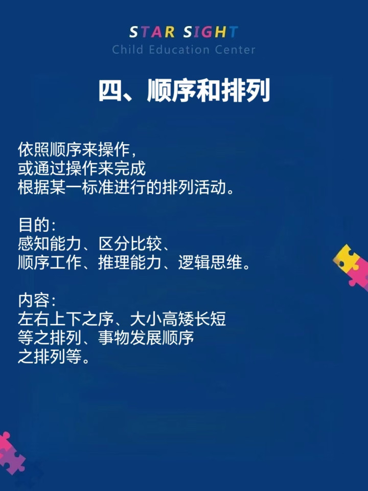 自闭症儿童的认知能力训练涵盖8大领域:注意力、观察力、记忆力、数字认知、图形认知、序列认知、异类鉴别以及同类匹配。